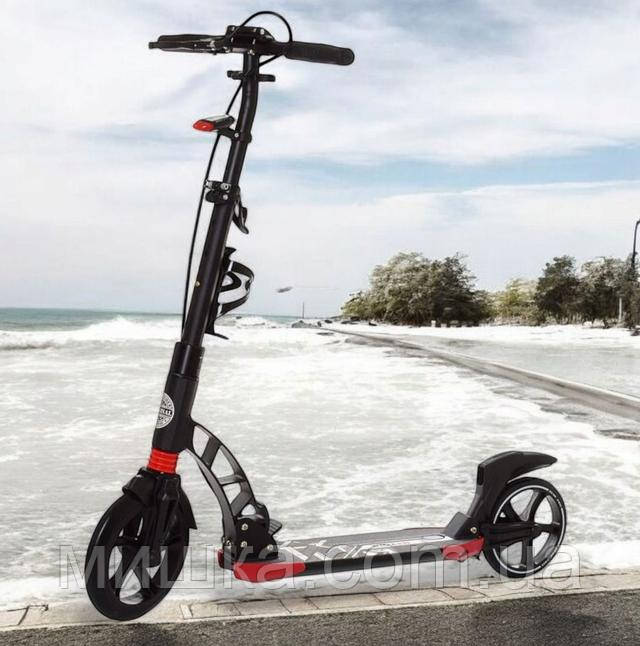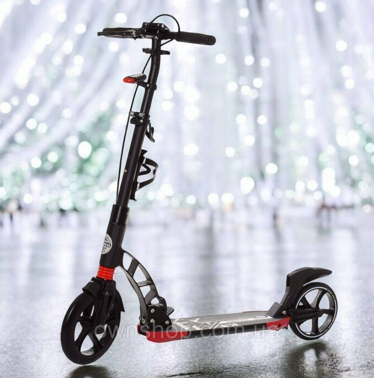 Двоколісний алюмінієвий самокат D-Max-230 Black ліхтарик, ручне гальмо, тримач для пляшечки!