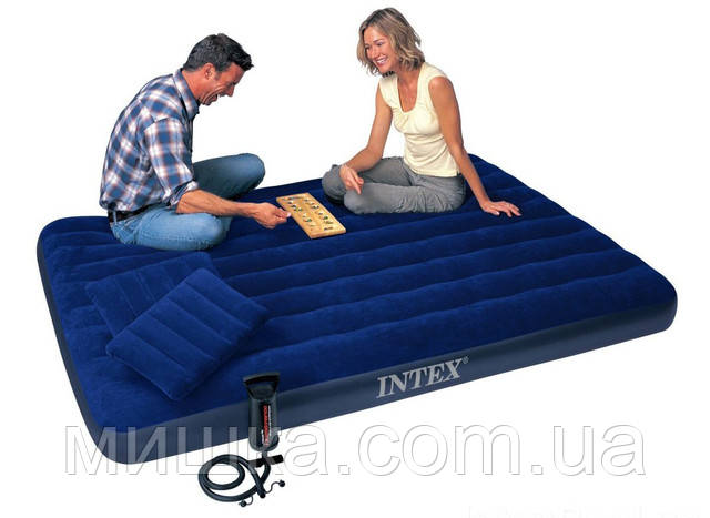Надувний двоспальний велюр-матрац 152*203*25 см, дві подушки, насос, Intex 64765