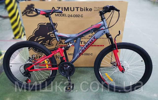 Велосипед гірський двухподвесной AZIMUT POWER 24" GFRD, рама 17", сіро-червоний