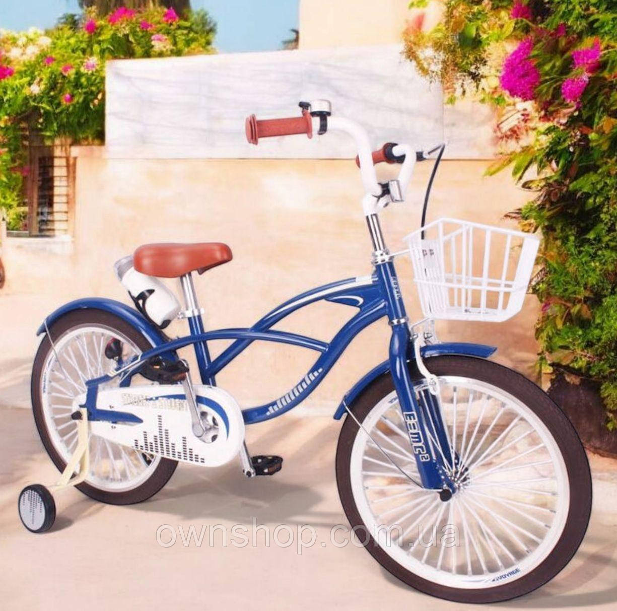 Дитячий велосипед Sigma "Straight a Student-20", додаткові колеса, кошик, синій