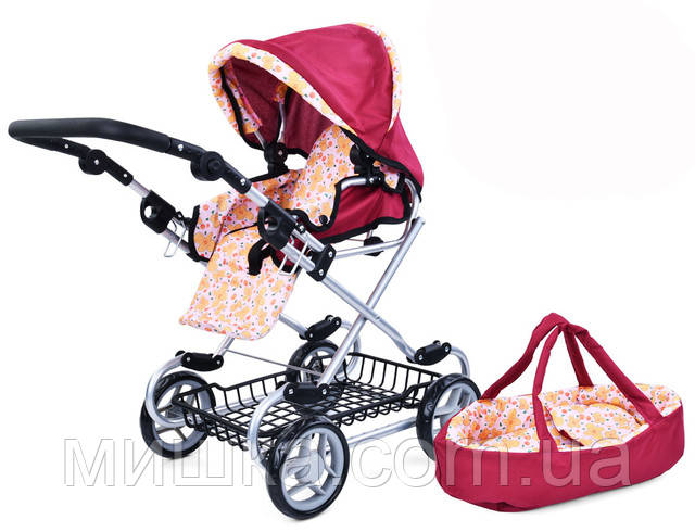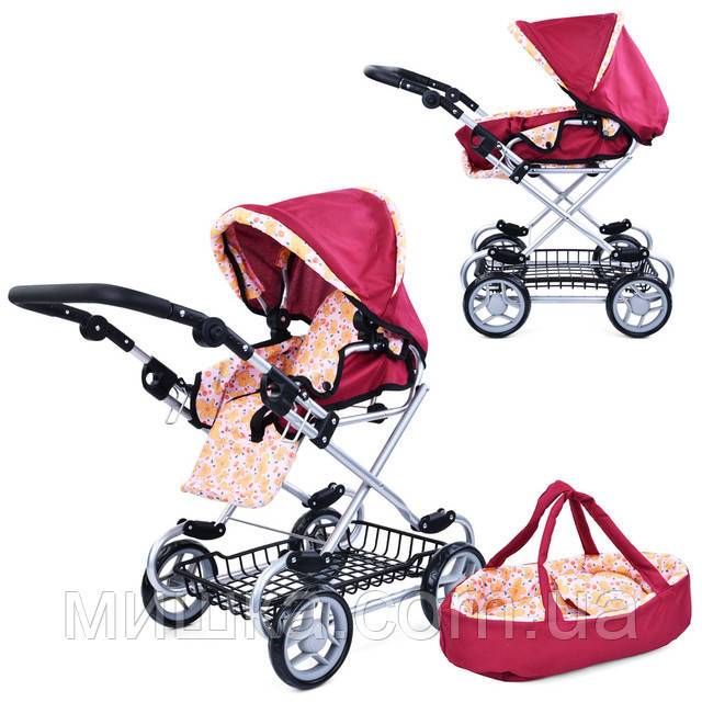 Коляска для ляльки 9346W Melogo, класика, 2 в 1, з люлькою, металева з прогумованою ручкою h = 63 см