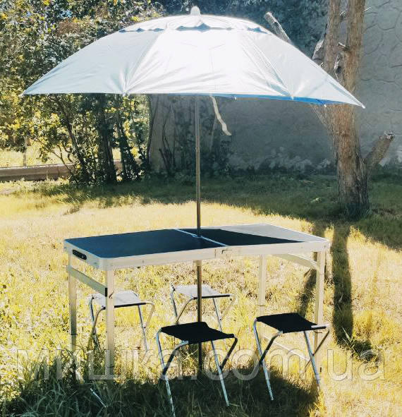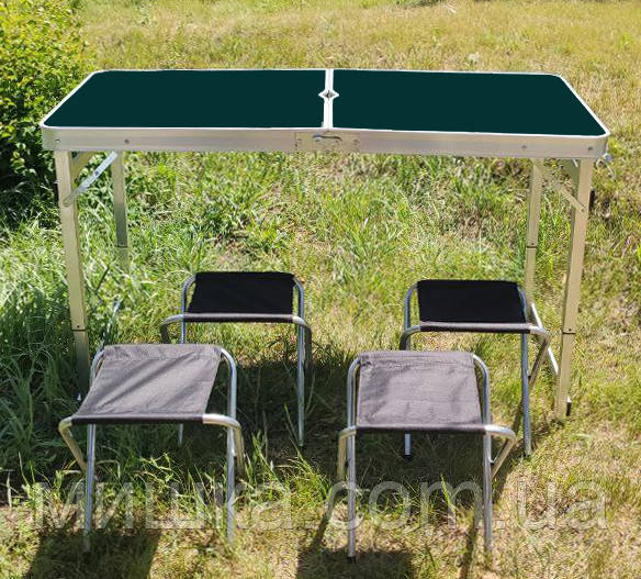 Столик для пікніка дуже зручний, легкий. Дана модель має можливість складатися в "книжку" з розміщенням у ньому табуреток, що відображається на зручності його транспортування.